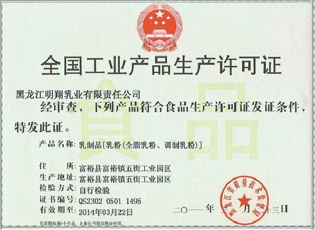 捷報頻傳佳音,繼明一國際(福建)生產(chǎn)基地順利獲得全國首批新嬰幼兒配方乳粉、乳制品生產(chǎn)許可證后,3月22日,明一國際旗下明翔乳業(yè)、齊齊明一再獲得國家頒發(fā)的新乳制品生產(chǎn)許可證。至此,明一國際旗下三大生產(chǎn)基地全部順利通過國家乳制品新版QS認(rèn)證。