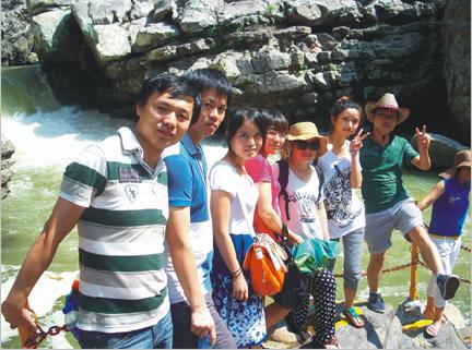9月8日,明一國際的員工在福州萬象城集結完畢后,開啟了2012年夏季明一國際員工白水洋鴛鴦溪歷練之旅。經過4個小時的車程顛簸,我們到達此次拓展第一站——白水洋。當景區電瓶車載著大家一路向下的時候,當徐徐山風吹來的時候,當白水洋一馬平川的洋面展現在大家眼前的時候,4個多小時的舟車勞頓一掃而光。換過衣服,大家“撒花”般地沖向白水洋。