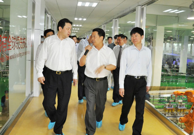 在集團領導陪同下,楊書記一行參觀了明一國際生產線、高科技營養研發中心、明一高科技產品展示廳,企業文化、品牌展示大廳,以及環境優美的“一切為了孩子”主題公園和人性化員工生活區等。在參觀生產制造過程中,楊書記對明一國際擁有先進的生產車間,和營養研發中心及專家團隊給予高度贊賞。