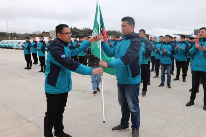 活動運營部葉總監為明一虎狼之師授旗,吹響2019年沖鋒的號角。虎狼之師蓄勢待發,踏上新征程,奔赴全國市場。