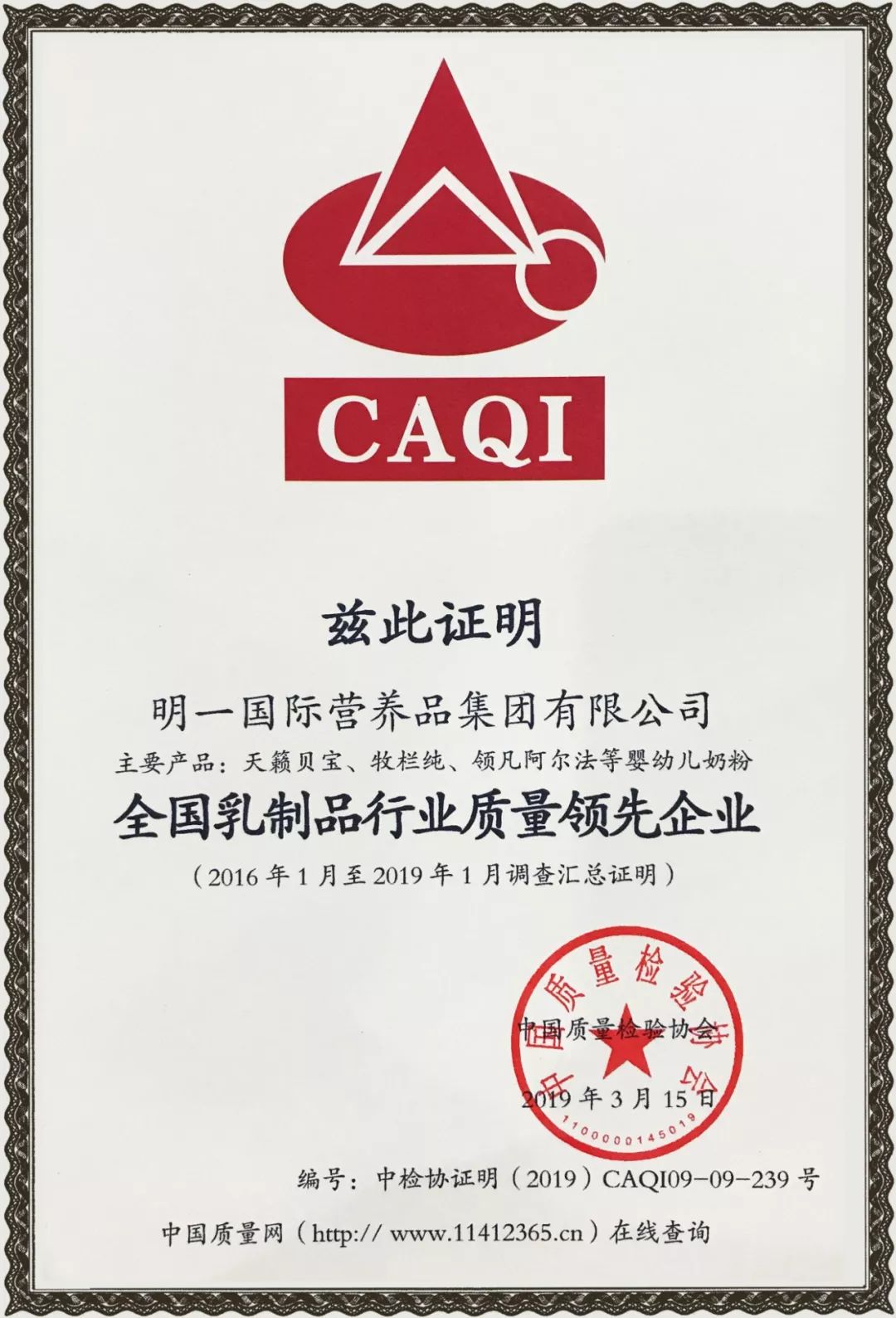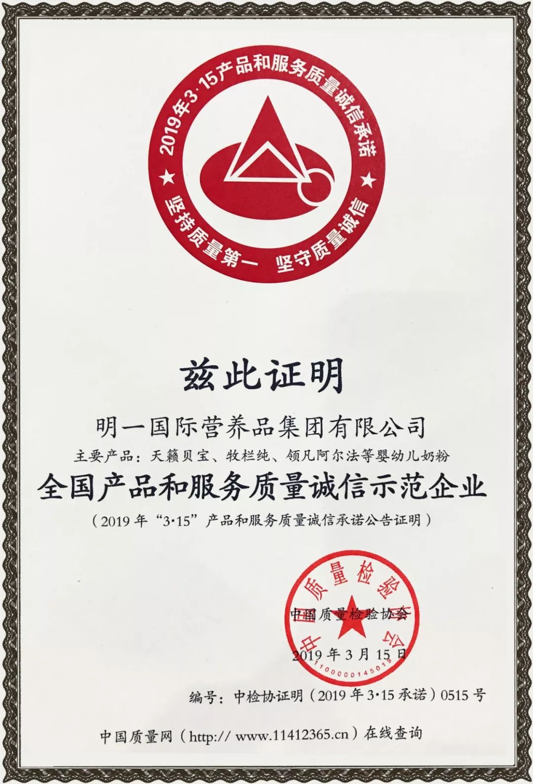 在此次主題活動中,明一國際斬獲“全國產品和服務質量誠信示范企業”、“全國乳制品行業質量領先企業”、“全國質量檢驗穩定合格產品”等多項殊榮。