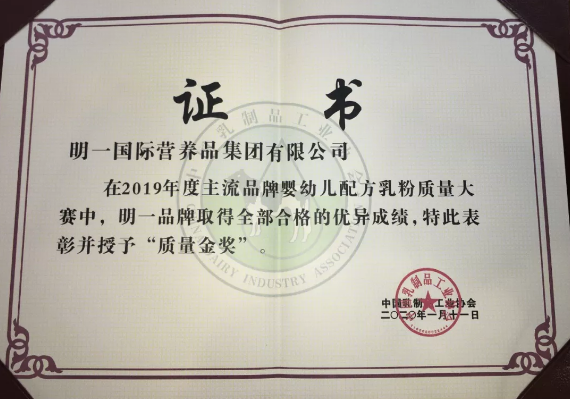 作為民族乳粉品牌的杰出代表,明一國(guó)際始終將品質(zhì)放在首要位置,在2019年中乳協(xié)年度主流品牌嬰幼兒配方乳粉質(zhì)量大賽中,取得全部合格的好成績(jī)。不僅證明了明一奶粉過(guò)硬的產(chǎn)品品質(zhì),更是對(duì)明一奶粉質(zhì)量安全管理的肯定。