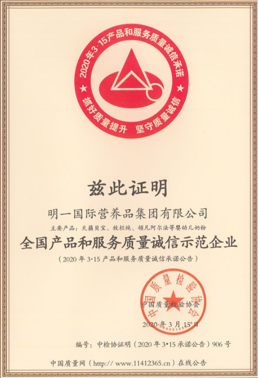 天天315,明一在行動(dòng)!明一國際再獲全國質(zhì)量誠信示范企業(yè)稱號(hào)