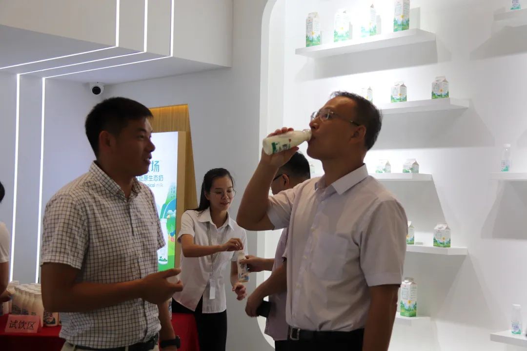 張副主席一行實地察看了明一國際嬰幼兒奶粉生產大樓和液態奶生產大樓,聽取了明一國際建設“海峽云上牧歌”田園綜合體項目的情況匯報,現場親自品嘗了明一天籟牧場生態鮮奶。