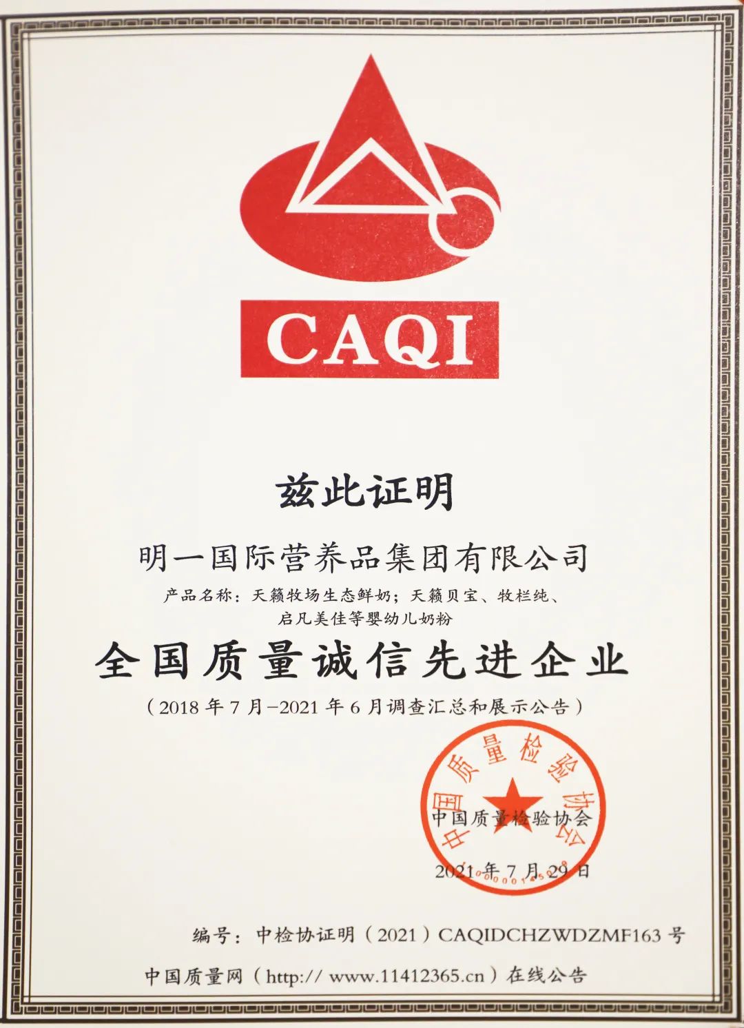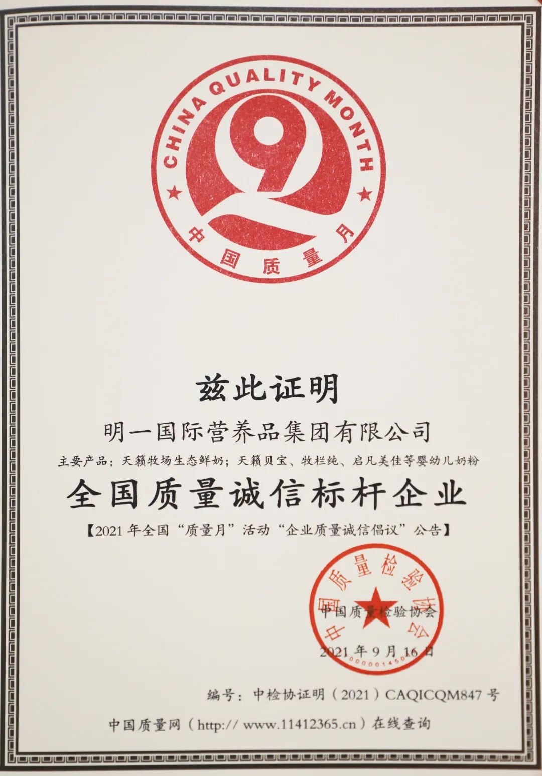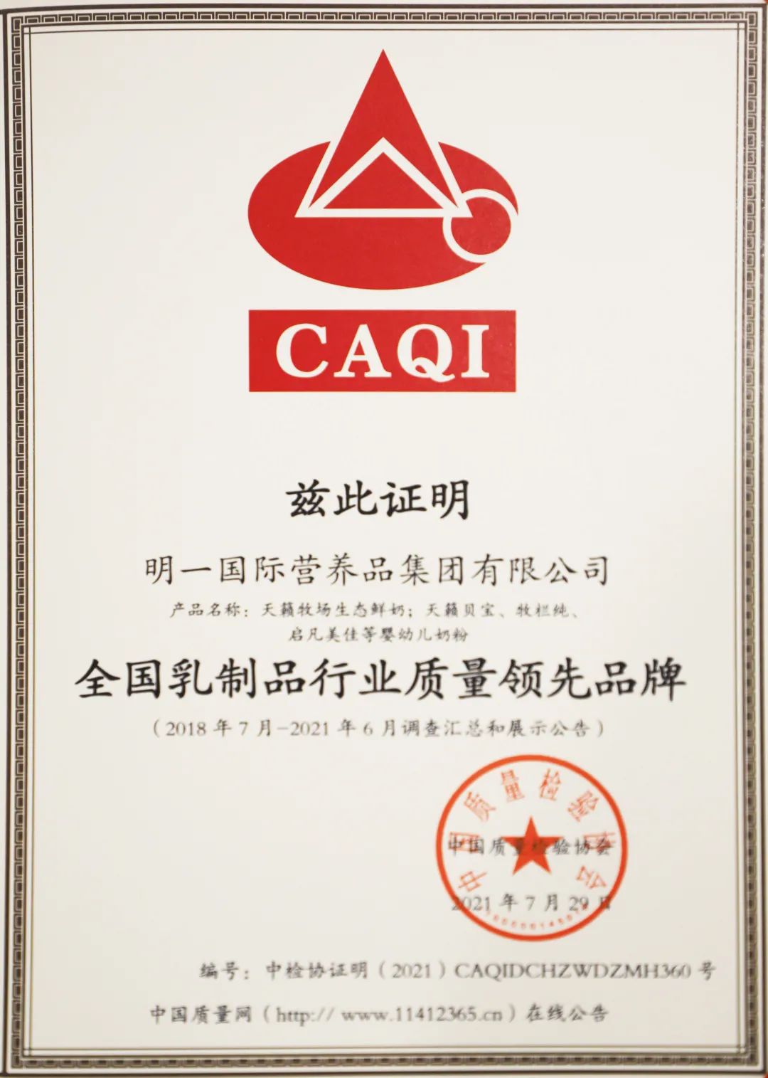 全國(guó)乳制品行業(yè)質(zhì)量領(lǐng)先品牌