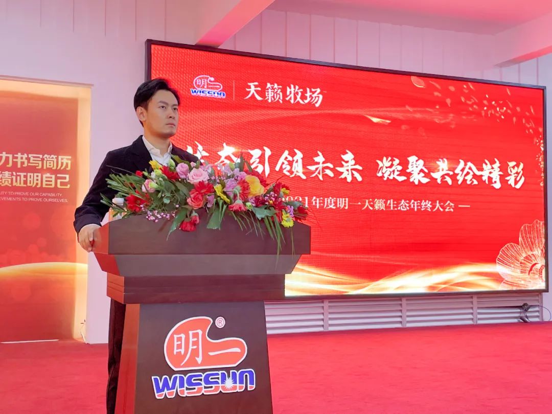 隨后,以“生態引領未來 凝聚共繪精彩”為主題的2021年度明一天籟生態事業部年終大會也順利召開。會上,天籟生態陳董事長對各部門同仁一年來的辛苦付出表示感謝。他認為年輕的團隊需要年輕的干勁,才能打好一場場的攻堅戰、陣地戰。用最短的時間把最好的產品送到消費者手上是我們贏得消費市場的最佳利器。希望2022年能夠揚帆奮進,再創佳績!