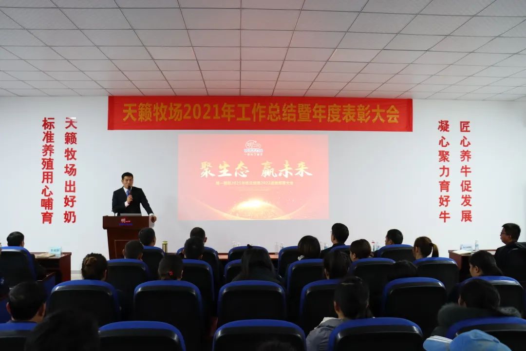 明一國際天籟牧場總經理范傳照回顧了天籟牧場2021年的建設情況,希望新的一年,天籟牧場各職能部門在保質、保量、保安全、保生產的前提下,緊緊圍繞集團戰略發展方向,細化崗位職責,早日實現“打造世界級標桿牧場”的目標。