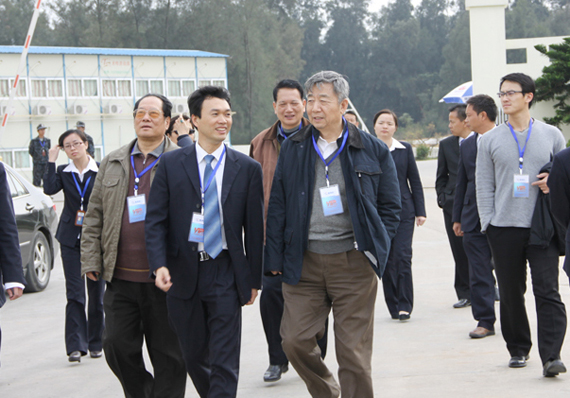 池總向魏會(huì)長(zhǎng)介紹明一(福建)生產(chǎn)基地廠房布局環(huán)境