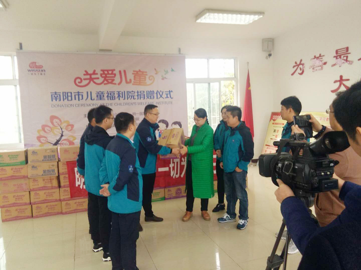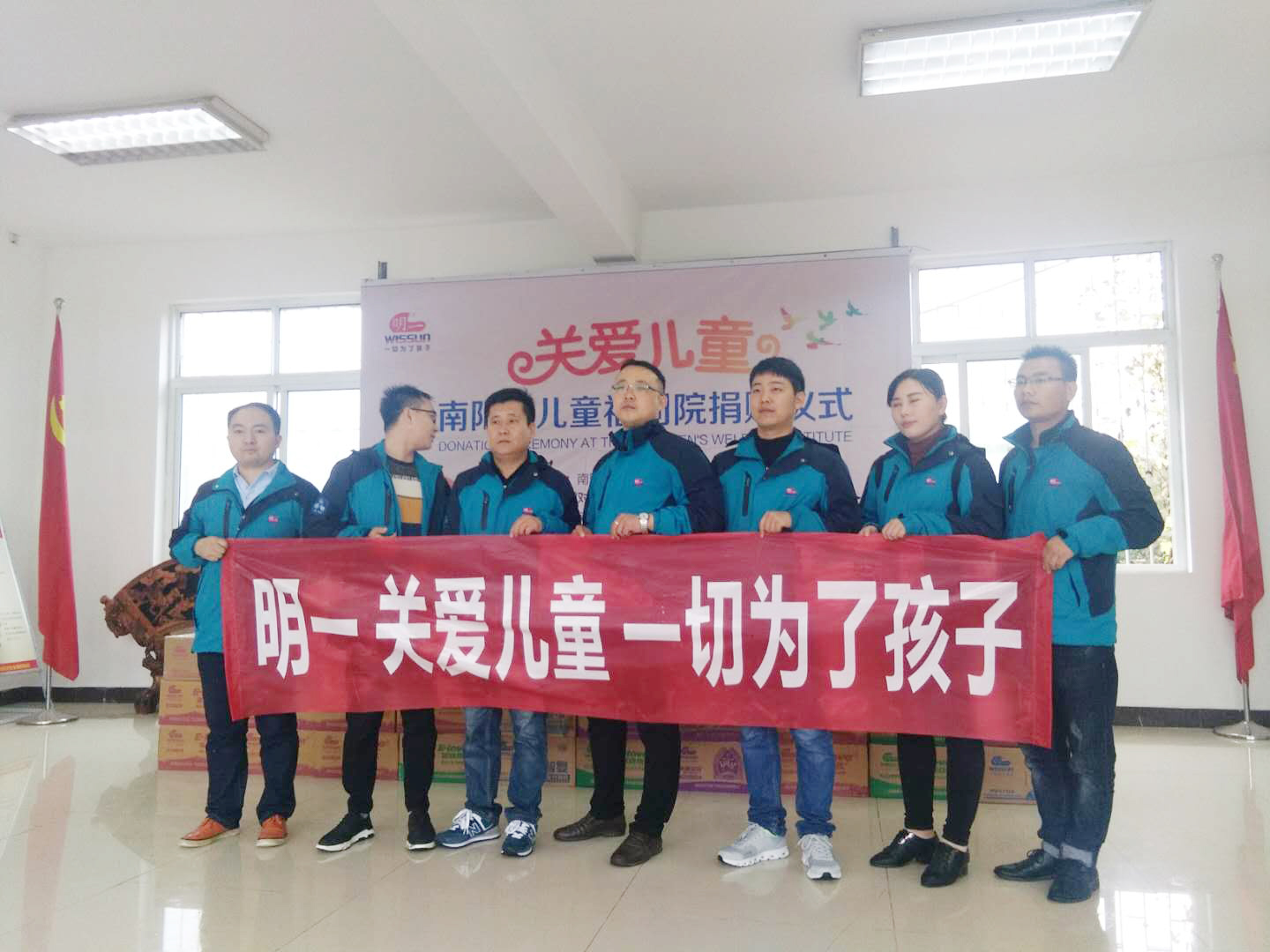 現場,明一國際向南陽兒童福利院孩子們捐贈50箱營養奶粉,幫助他們健康快樂地成長。同時希望孩子們努力拼搏,將來成為社會有用之才,不辜負社會各界的殷切期望。明一國際愛心小組組長張通在接受記者采訪時談到:福利院孩子是社會上弱小的群體,關注這一弱勢群體是全社會共同的責任。
