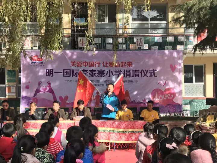 當天,臨淇鎮李家寨學校內載歌載舞,歡聲笑語,暖意融融,明一國際向學生們捐贈了營養奶粉和學習用品,希望孩子們懂得感恩,做愛心傳遞者,以優異的成績回饋社會愛心人士的關愛。孩子們充滿童真的小臉上個個洋溢著幸福的微笑。為了表達心中的感激和謝意,李家寨學校的孩子們熱情獻上自己準備的精彩小節目,并獻上了鮮艷的紅領巾。